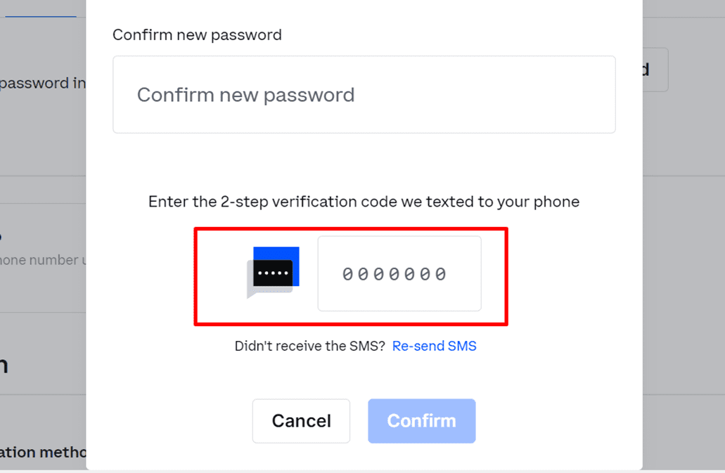 5. Und geben Sie den zweiten Bestätigungscode ein, den sie an Ihr Telefon gesendet haben.