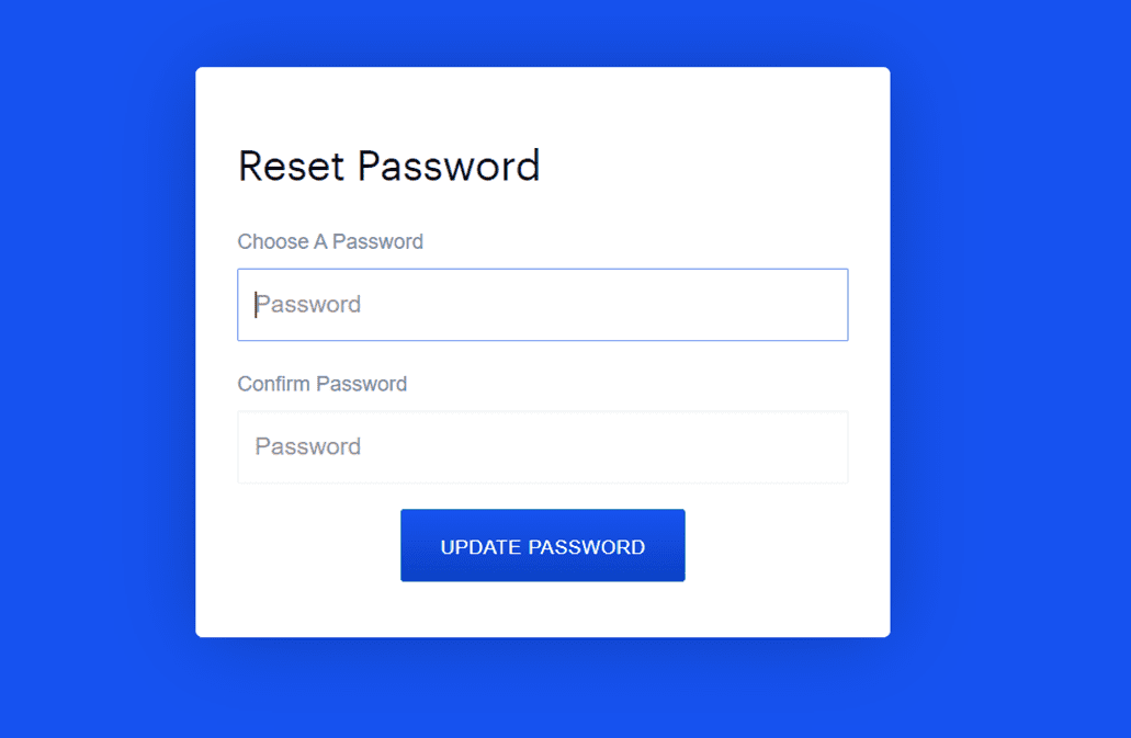 4. Geben Sie Ihr neues Passwort in die Felder Chosse a Password (Passwort auswählen) und Confirm Password (Passwort bestätigen) ein und wählen Sie dann Update Password (Passwort aktualisieren).