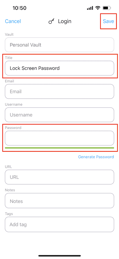 Wenn Sie fertig sind, fügen Sie das neue Sperrbildschirm-Passwort zu Ihrem Passwarden-Passwort-Manager hinzu.