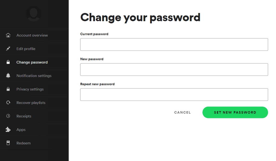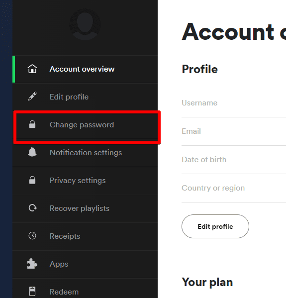 1. Melden Sie sich bei Ihrer Spotify-Site an und gehen Sie zum Abschnitt "Passwort ändern".