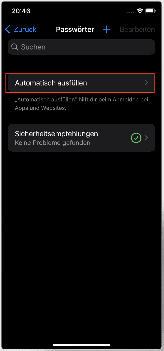 2. Tippen Sie auf AutoFill Passwords (Passwörter automatisch ausfüllen).