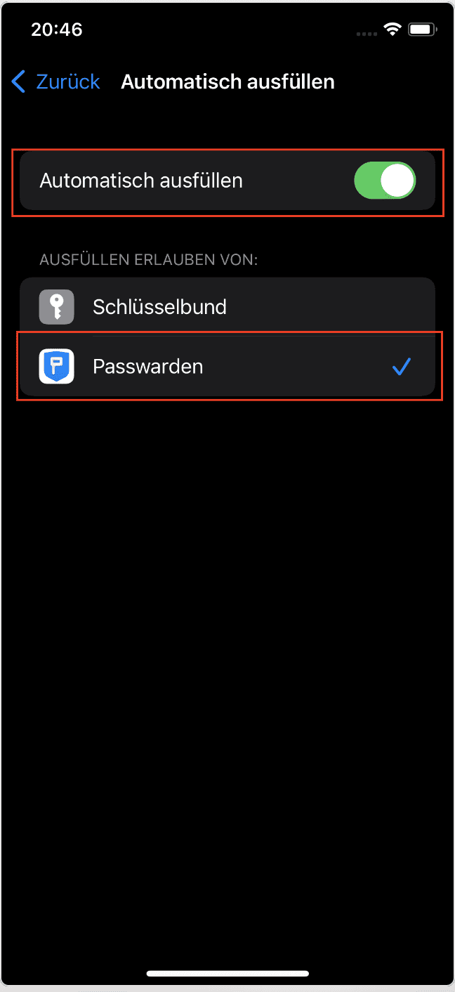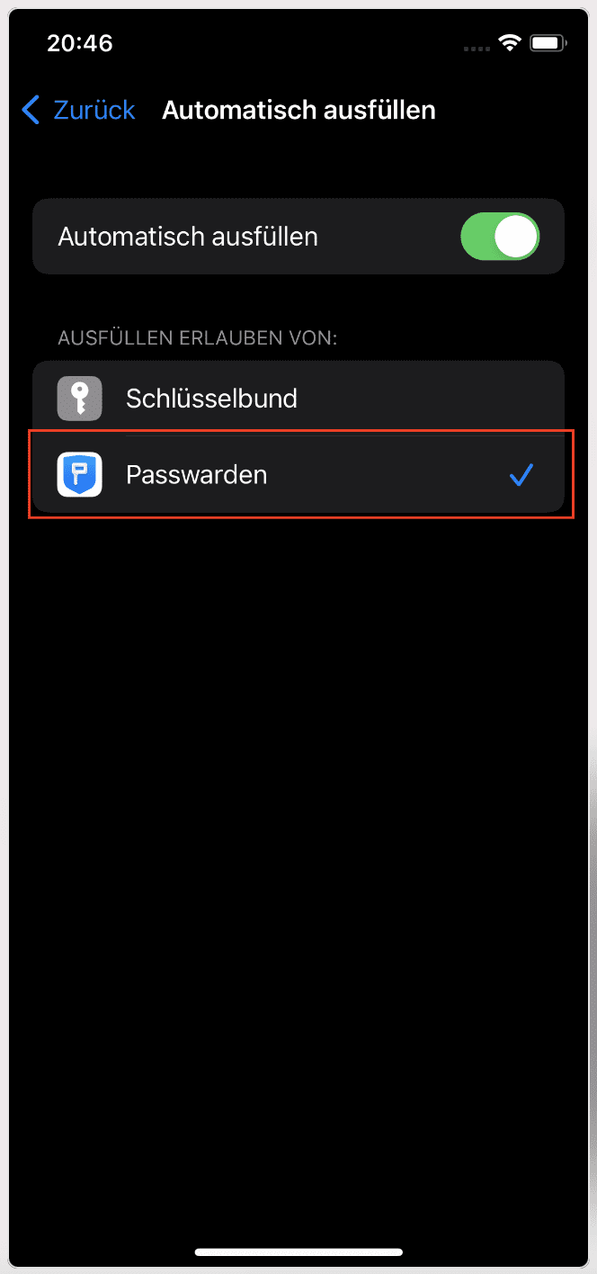 3. Aktiviere AutoFill Passwords (AutoFill-Passwörter).