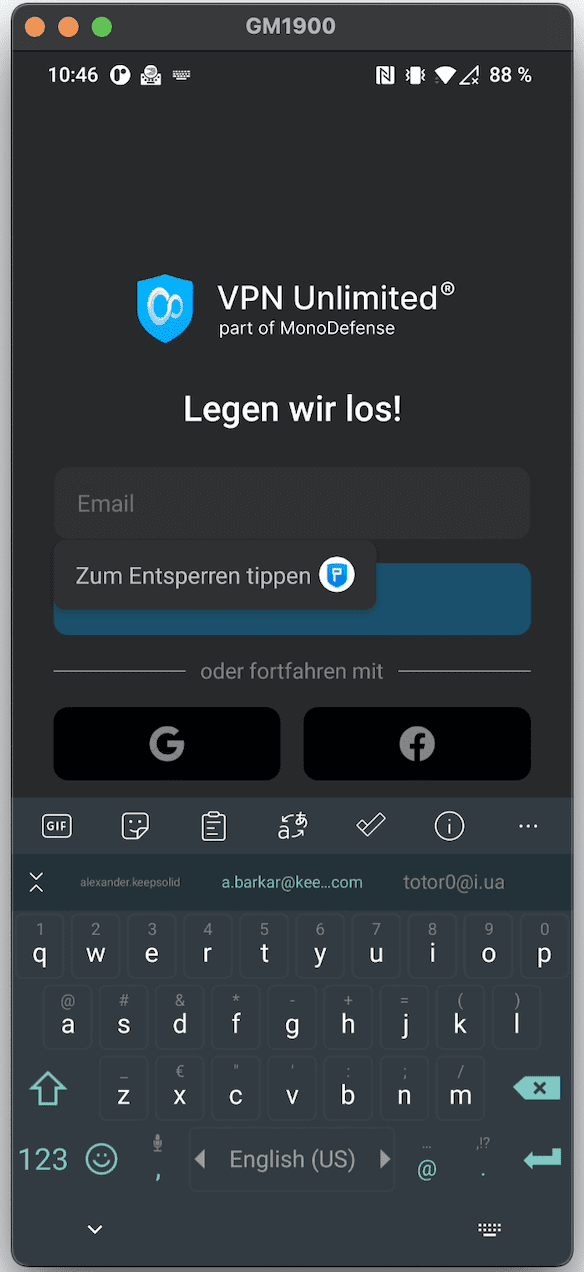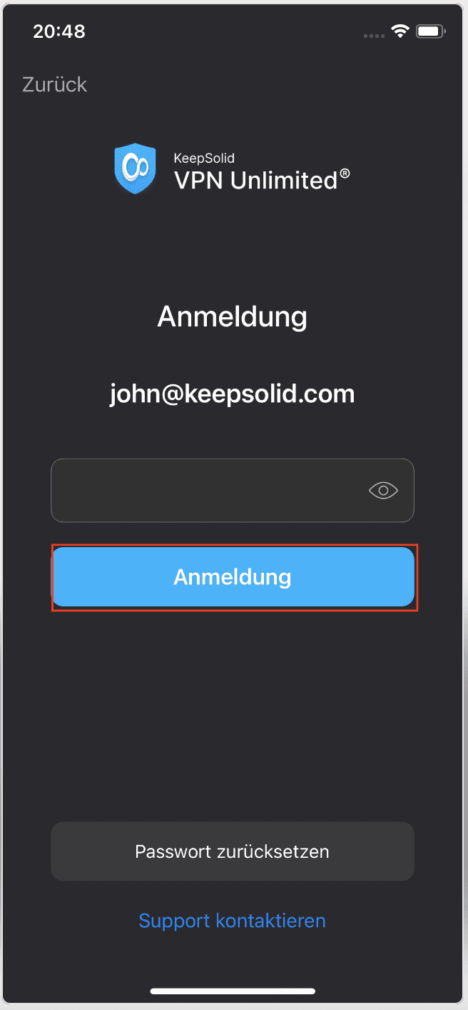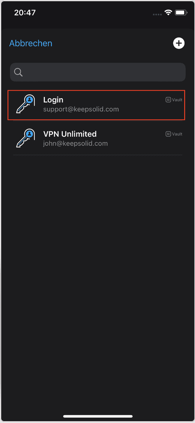 Hinweis: Die App VPN Unlimited wird als Beispiel genommen. Die Autofill-Funktion von Passwarden funktioniert reibungslos mit jeder Anwendung, die auf Ihrem iOS-Gerät installiert ist.