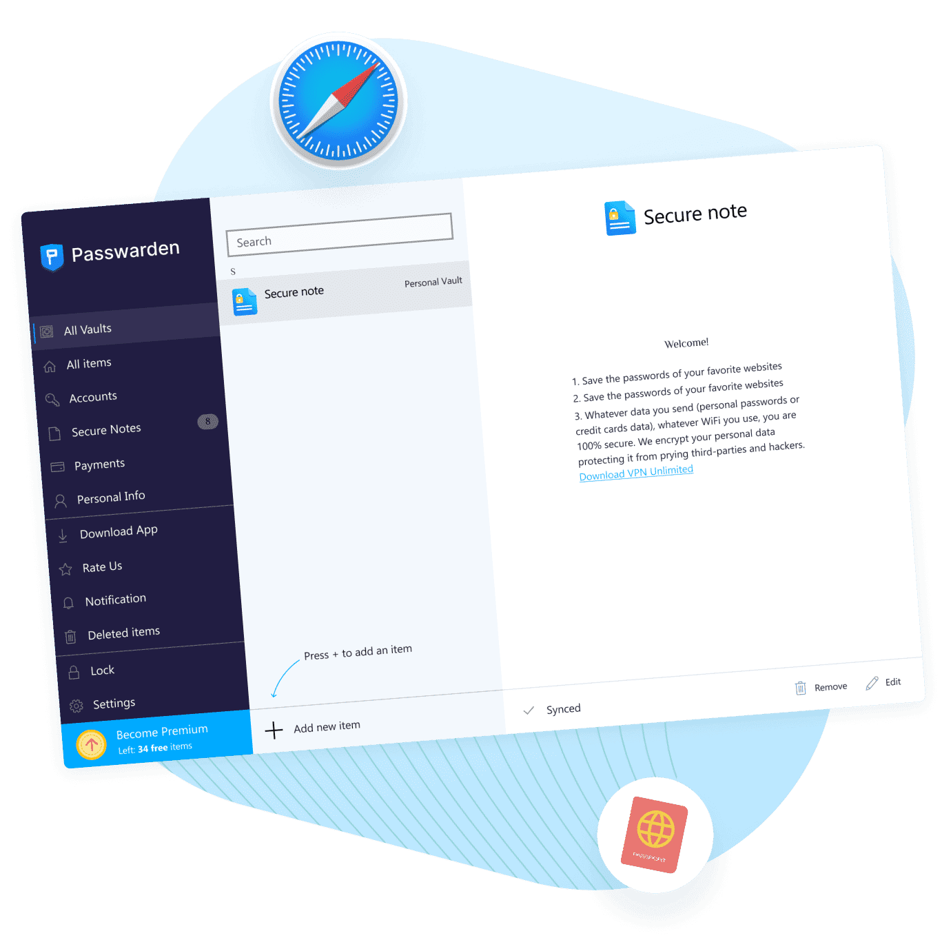 Download our extension for Safari from Mac App Store and protect your sensitive data with Passwarden.