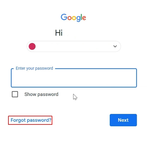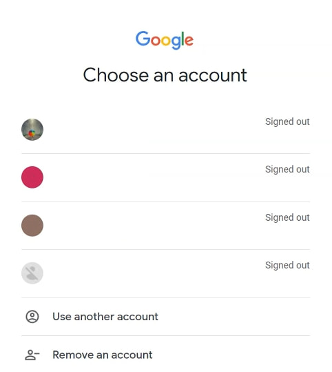 2. Si tienes más de una cuenta de Google, haz clic en la que deseas restablecer.
