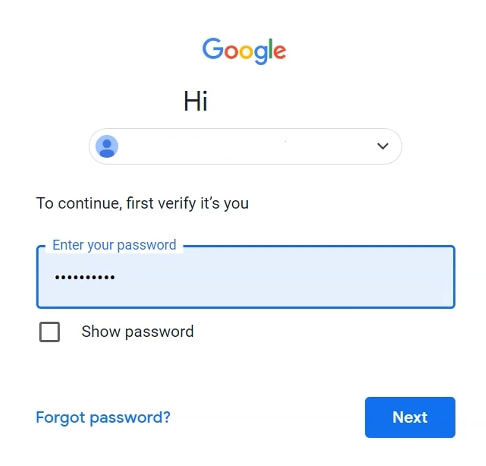 1. Inicia sesión en tu cuenta de Google usando tu contraseña actual.