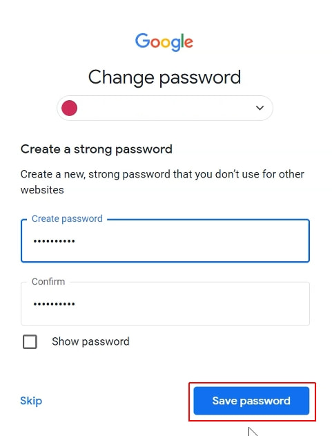 5. Ahora deberás crear una nueva contraseña para acceder a tu cuenta. Ingresa dos veces esta contraseña y presiona Save password (Guardar contraseña).