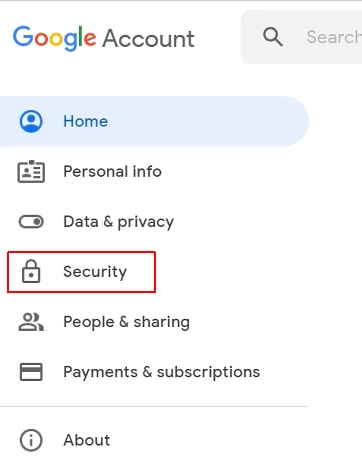3. Dirígete al submenú Security (Seguridad) situado en el lado izquierdo de la página.