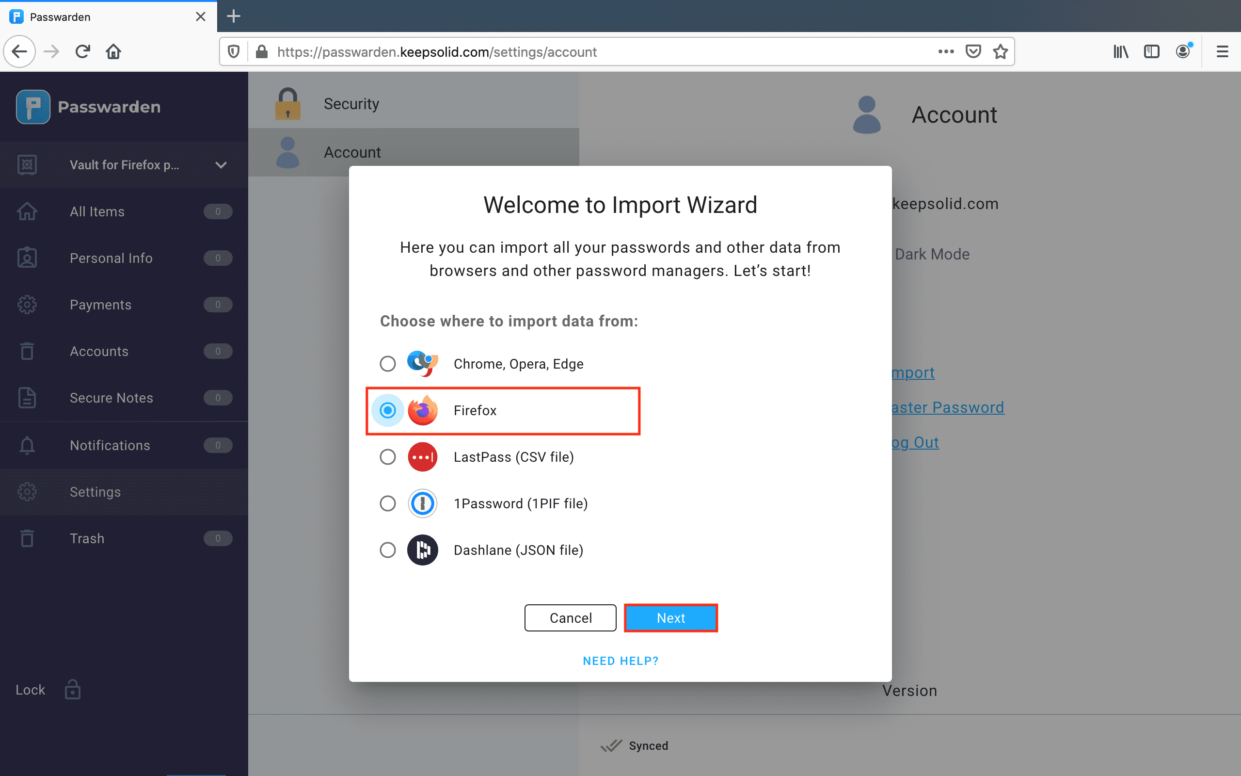 Ce guide vous fournit des instructions étape par étape sur la façon d'exporter des mots de passe enregistrés depuis le navigateur Firefox et de les importer dans Passwarden en une minute.
