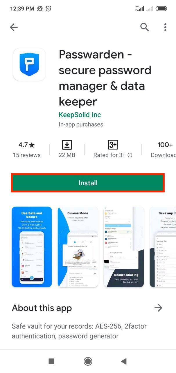 2. Ouvrez l'application Passwarden et cliquez sur Install (Installer).