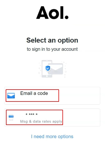 4. Now you need to decide whether to have a verification code sent to your electronic mail or mobile/cell phone. Click on the option that suits you best.