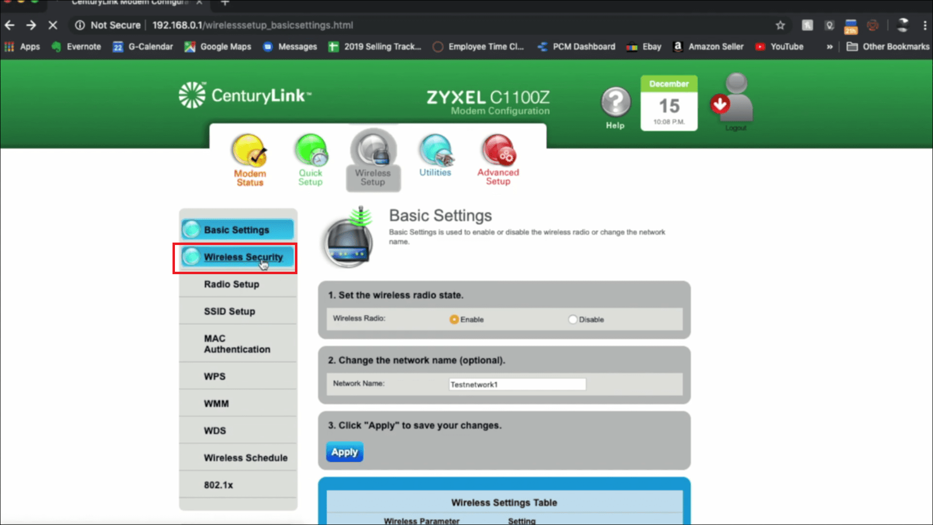 5. In the left sidebar, select "Wireless Security" from the “Wireless Setup” menu.