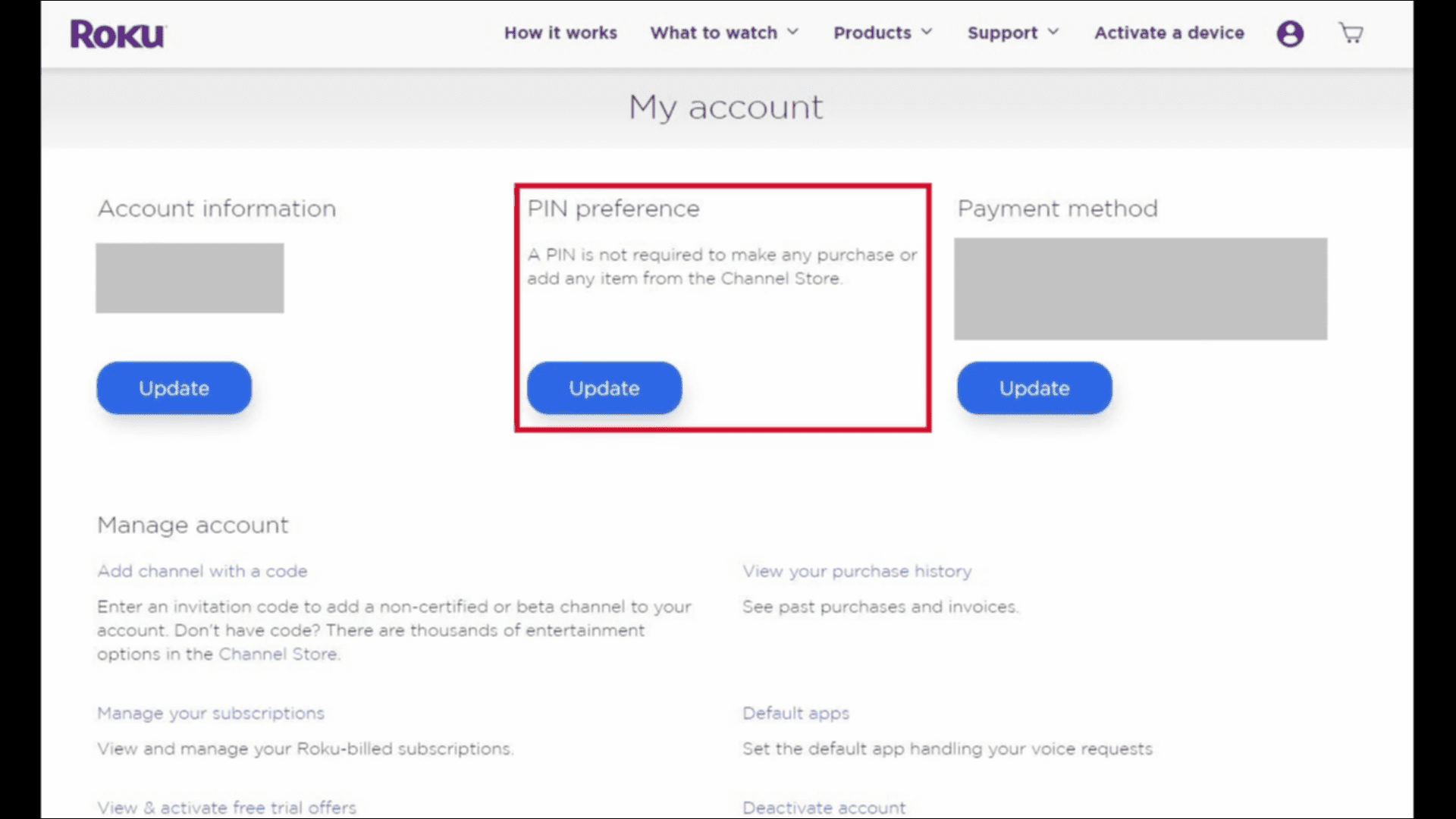 You'll be sent back to your Roku My Account screen, where a message will display across the top of the screen notifying you that your PIN preference has been updated.