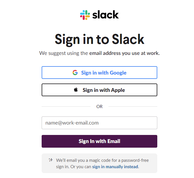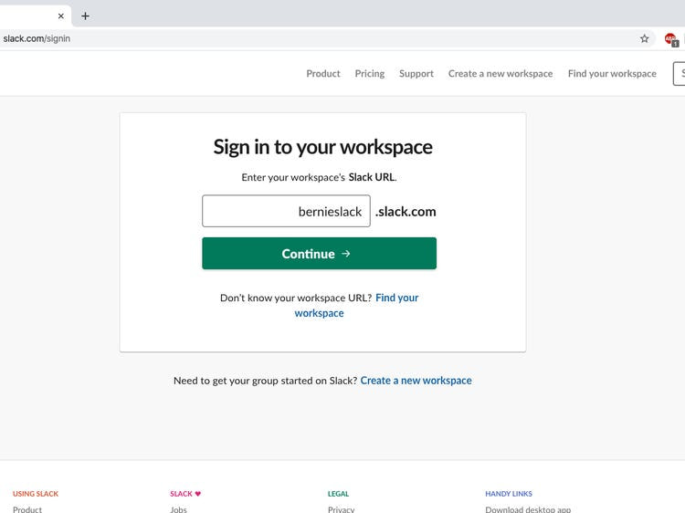 1. Go to the following website: https://slack.com/signin