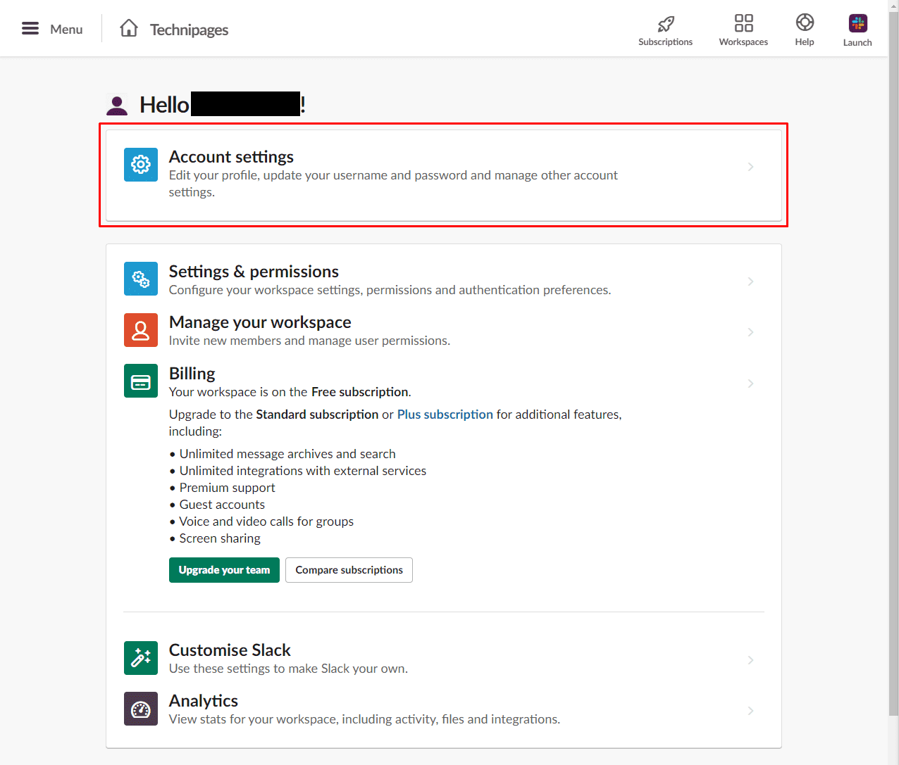 2. Select Slack to update it
