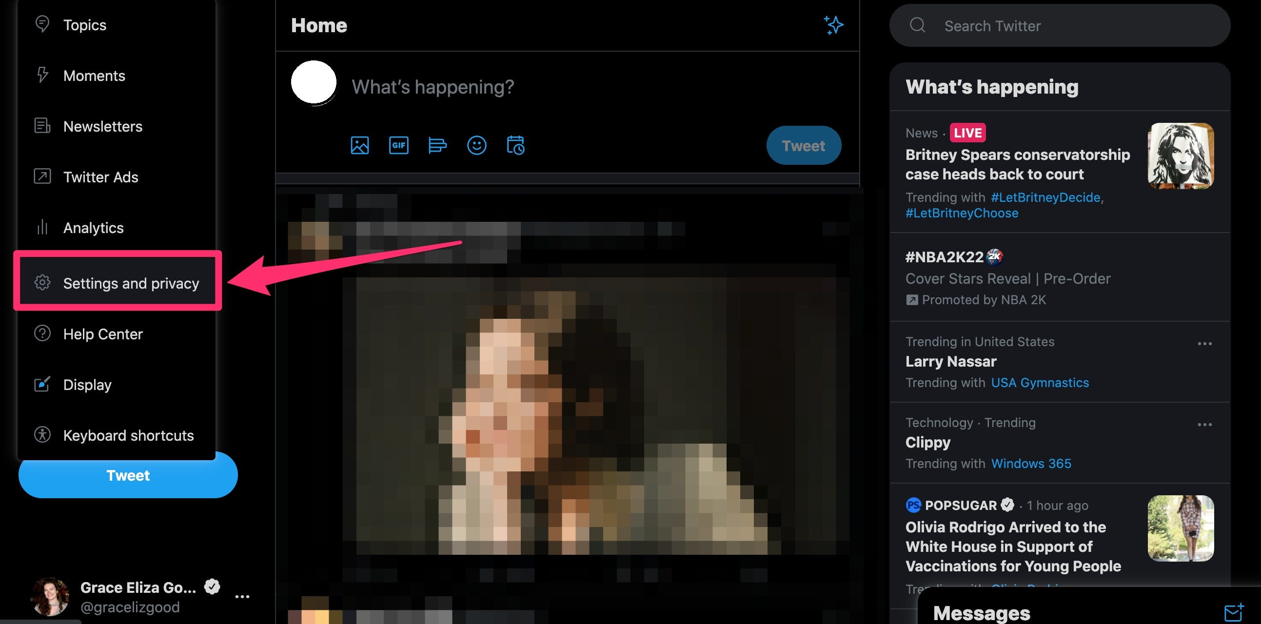 4. From the Settings and privacy page, select Account.