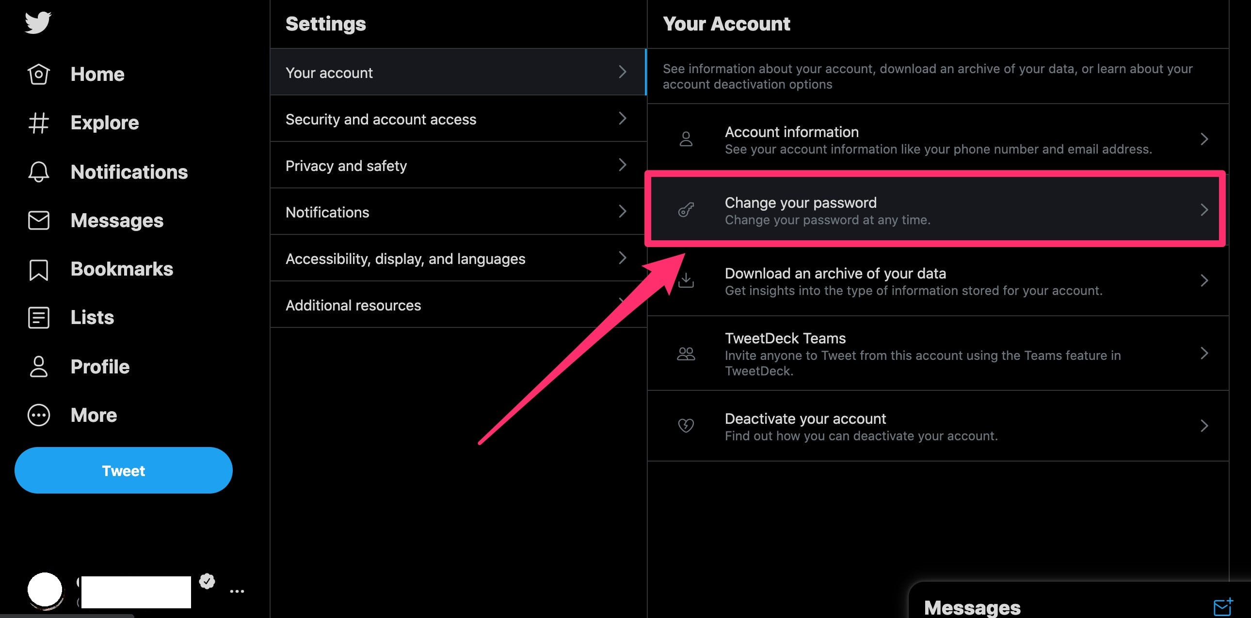 4. Click Change your password in the “Your Account” section of the Settings page.