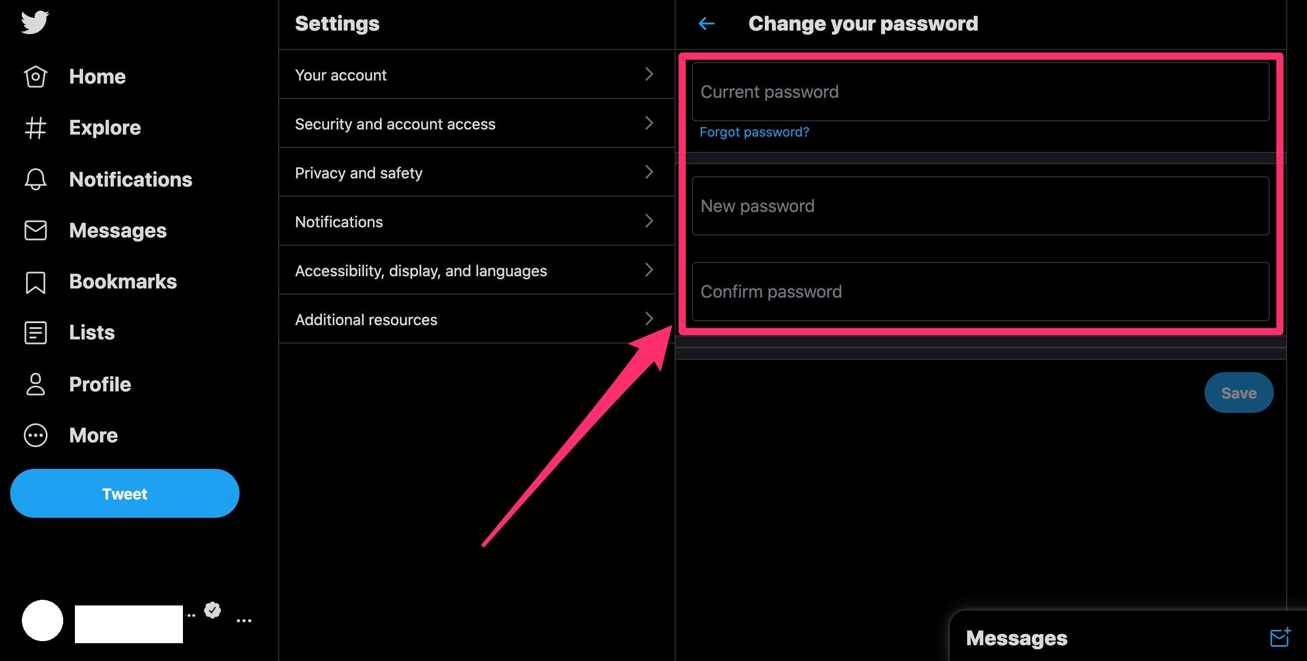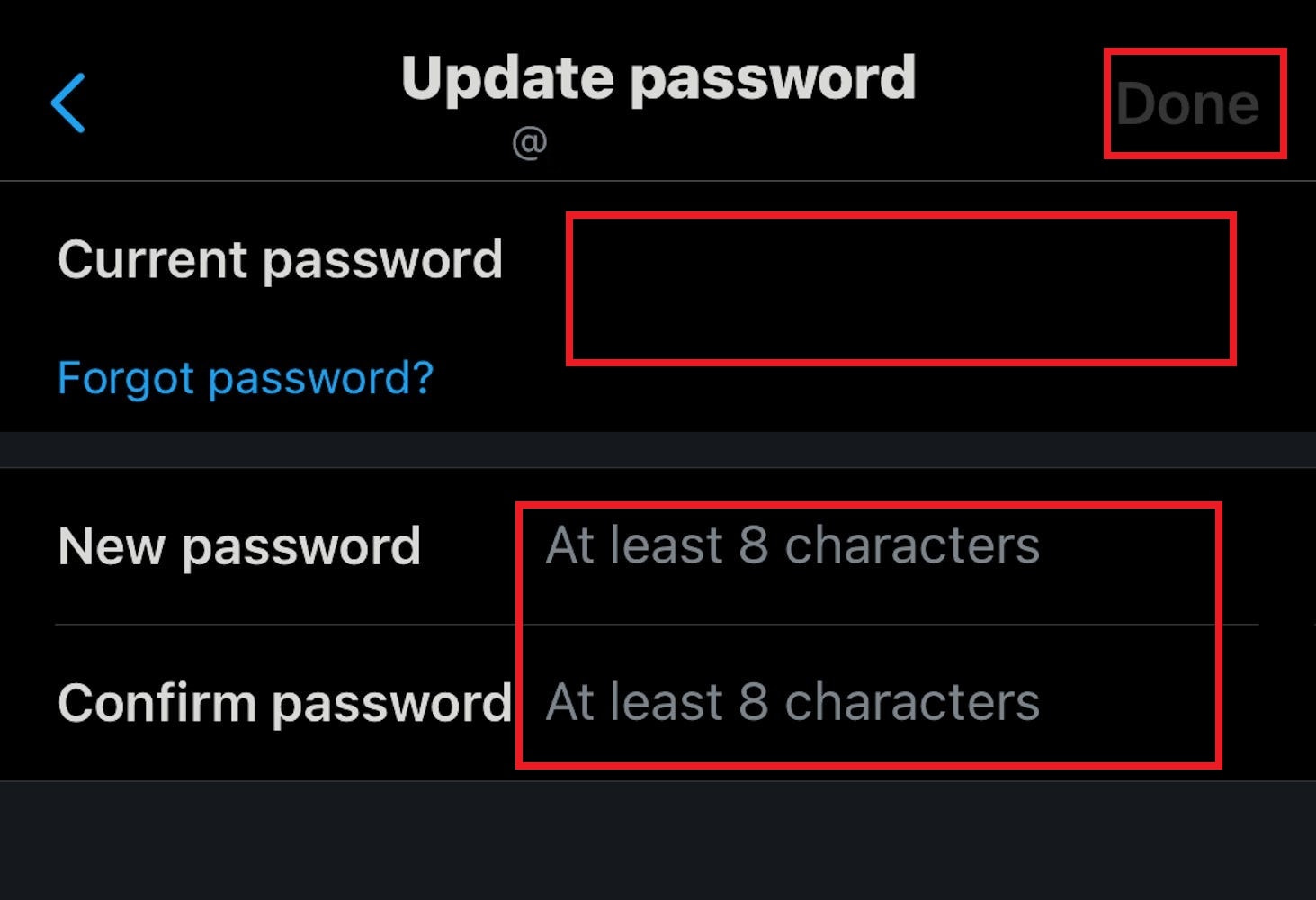 5. Enter your current password, followed by your new password, in the New password and Confirm password fields.