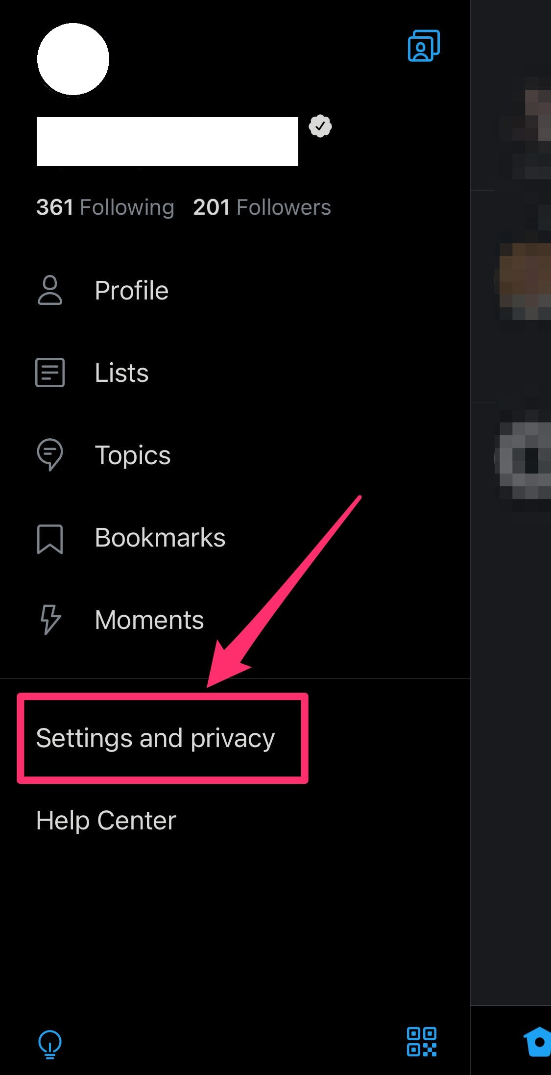 3. A menu list will appear, from the list tap, on settings and privacy.