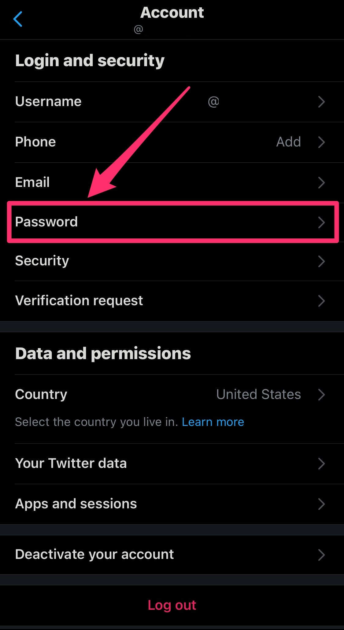 5. Tap Password on the Account page.