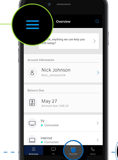 1. Launch the My Account app, then hit the Internet icon. When using an Android smartphone, click on the Menu symbol in the top left corner.