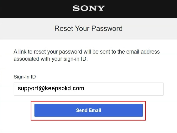 4. Enter the email that your PSN account is tied to and click on Send Email.