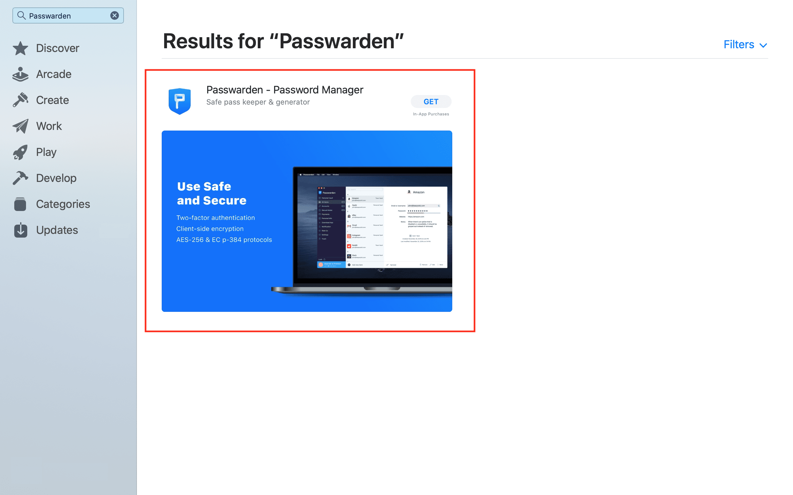 1. To download Passwarden on your macOS laptop or PC, follow this link or go to the Mac App Store and enter Passwarden in the Search field.