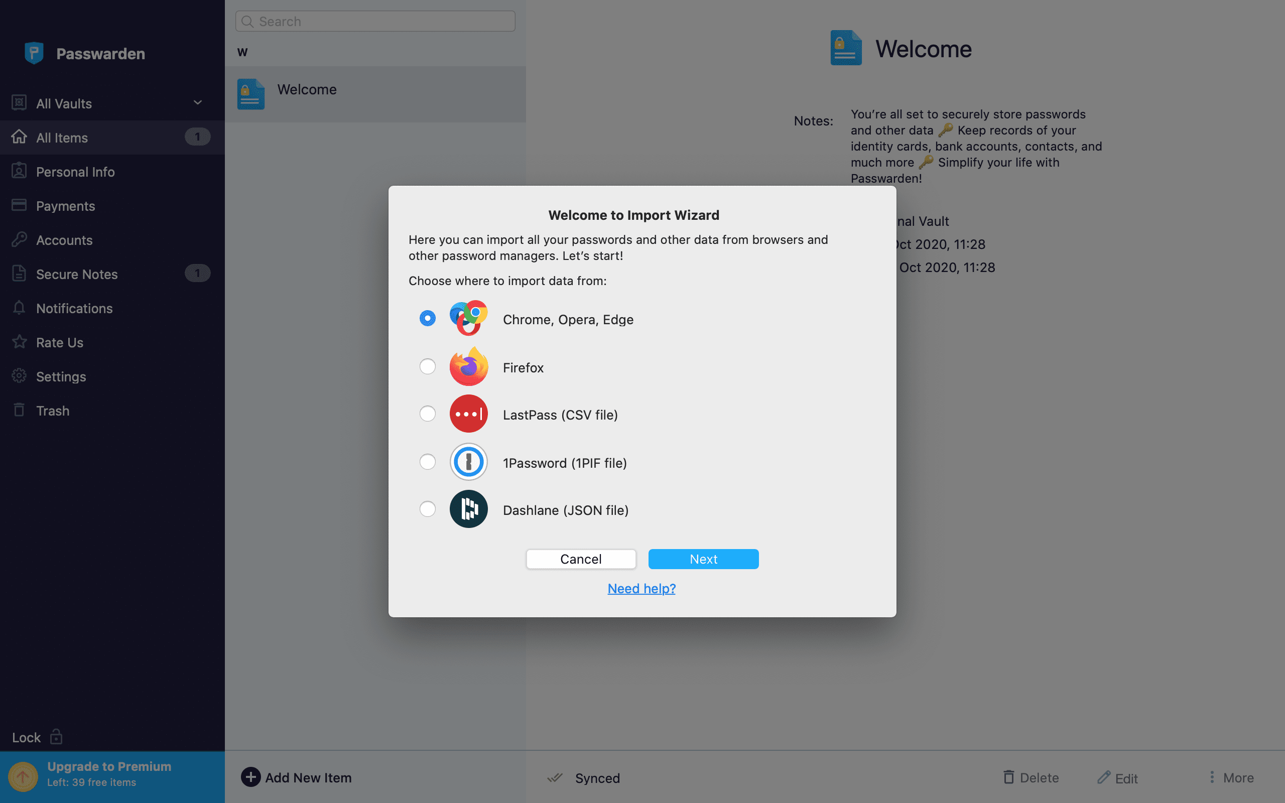 4. Great! The Wizard tool opens. Now you can easily import your data from browsers or other password managers. To do this, check out our step-by-step instruction.