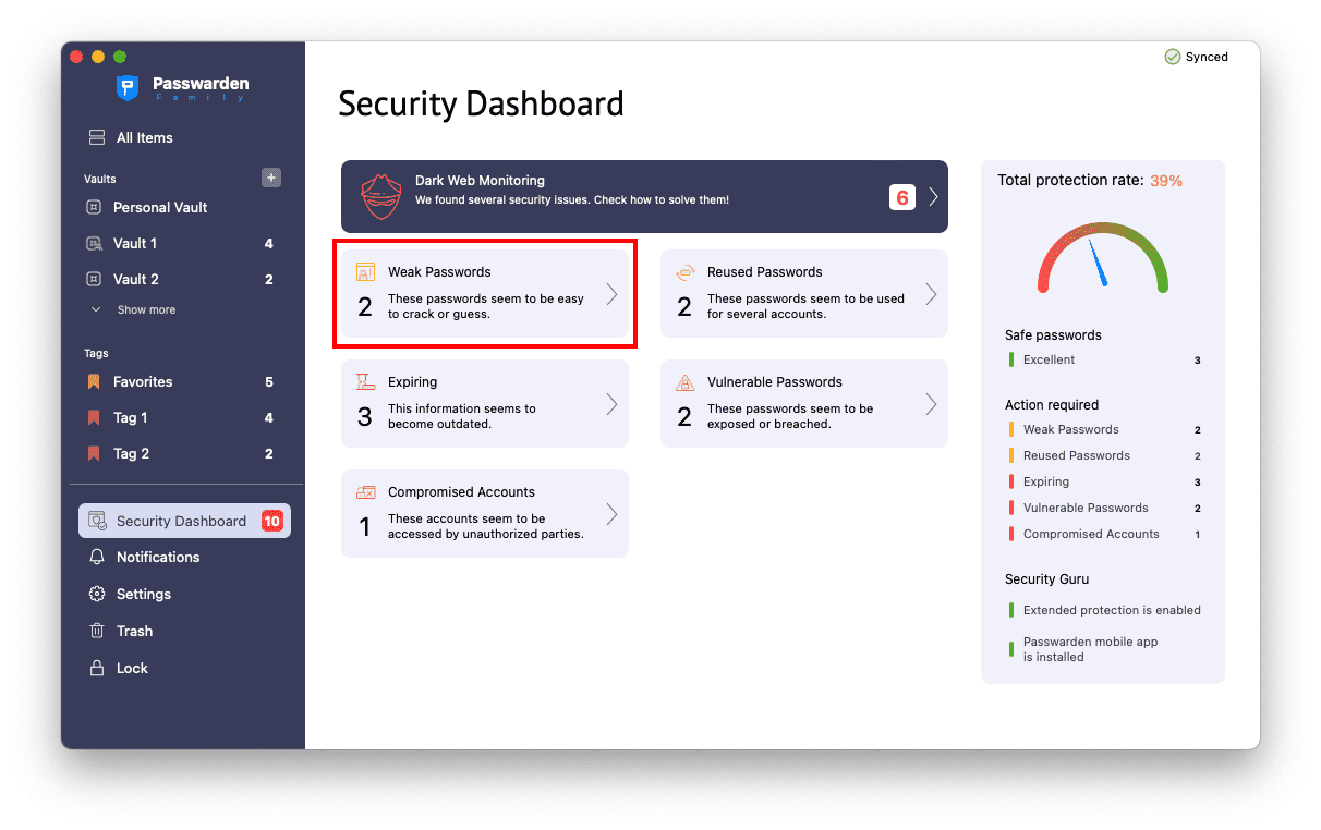 Get the best password weakness checker and stay safe with Security Dashboard.