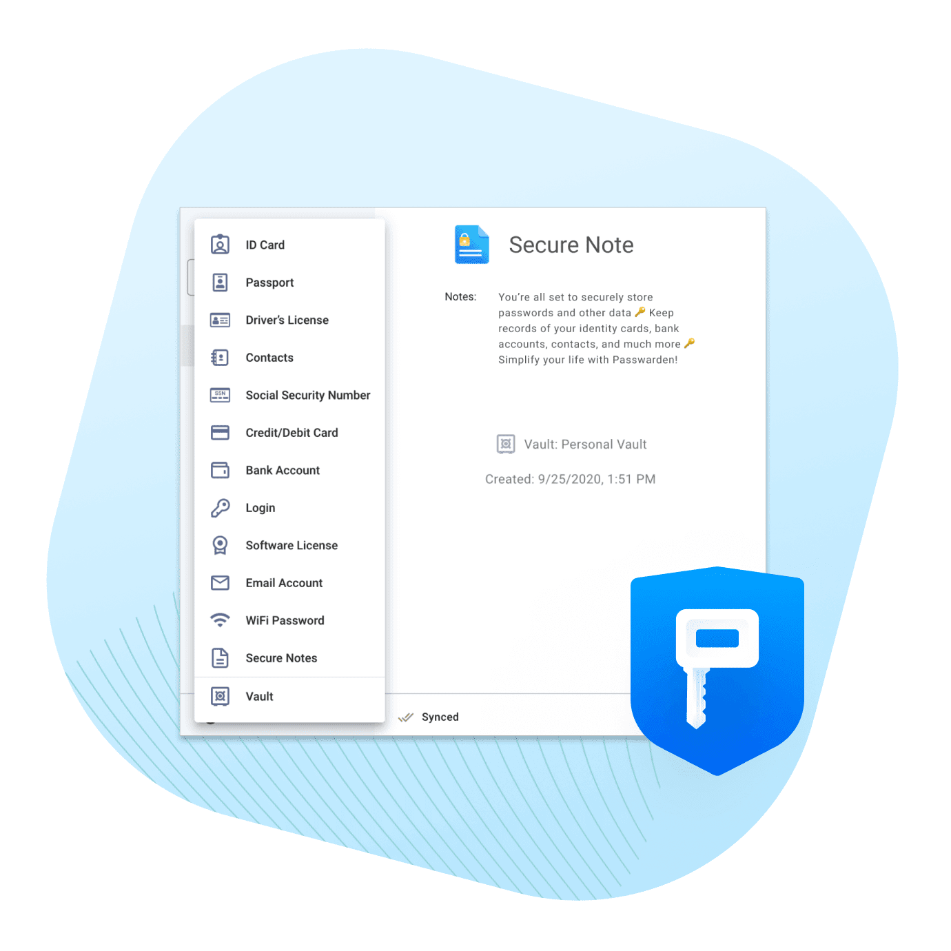 パスワード、アカウントの認証情報、個人情報、支払い情報、安全なメモなど、あらゆる種類のデータを保存できます。