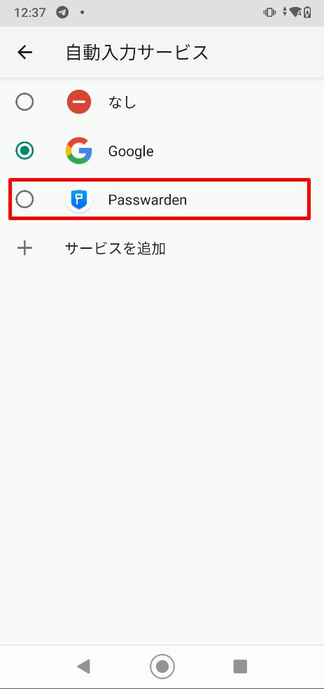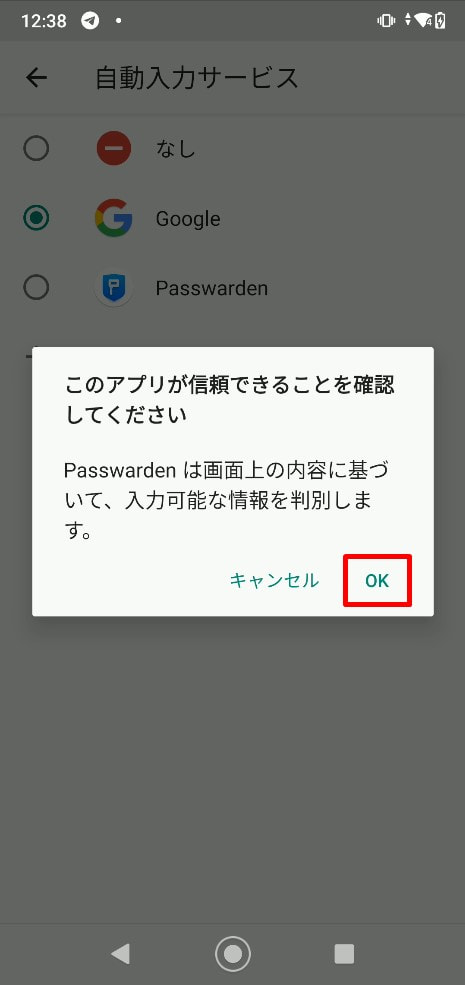 3.プライマリ自動入力サービスとしてPasswardenを選択し、OKをタップします。