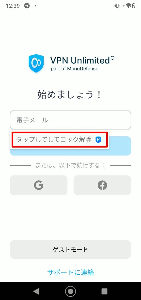 注: VPN Unlimitedアプリを例として取り上げています。Passwardenの自動入力機能は、あなたのAndroidデバイスにインストールされているすべてのアプリケーションで正常に機能します。