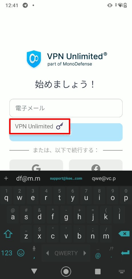 注: VPN Unlimitedアプリを例として取り上げています。Passwardenの自動入力機能は、あなたのAndroidデバイスにインストールされているどのアプリケーションでも正常に動作します。