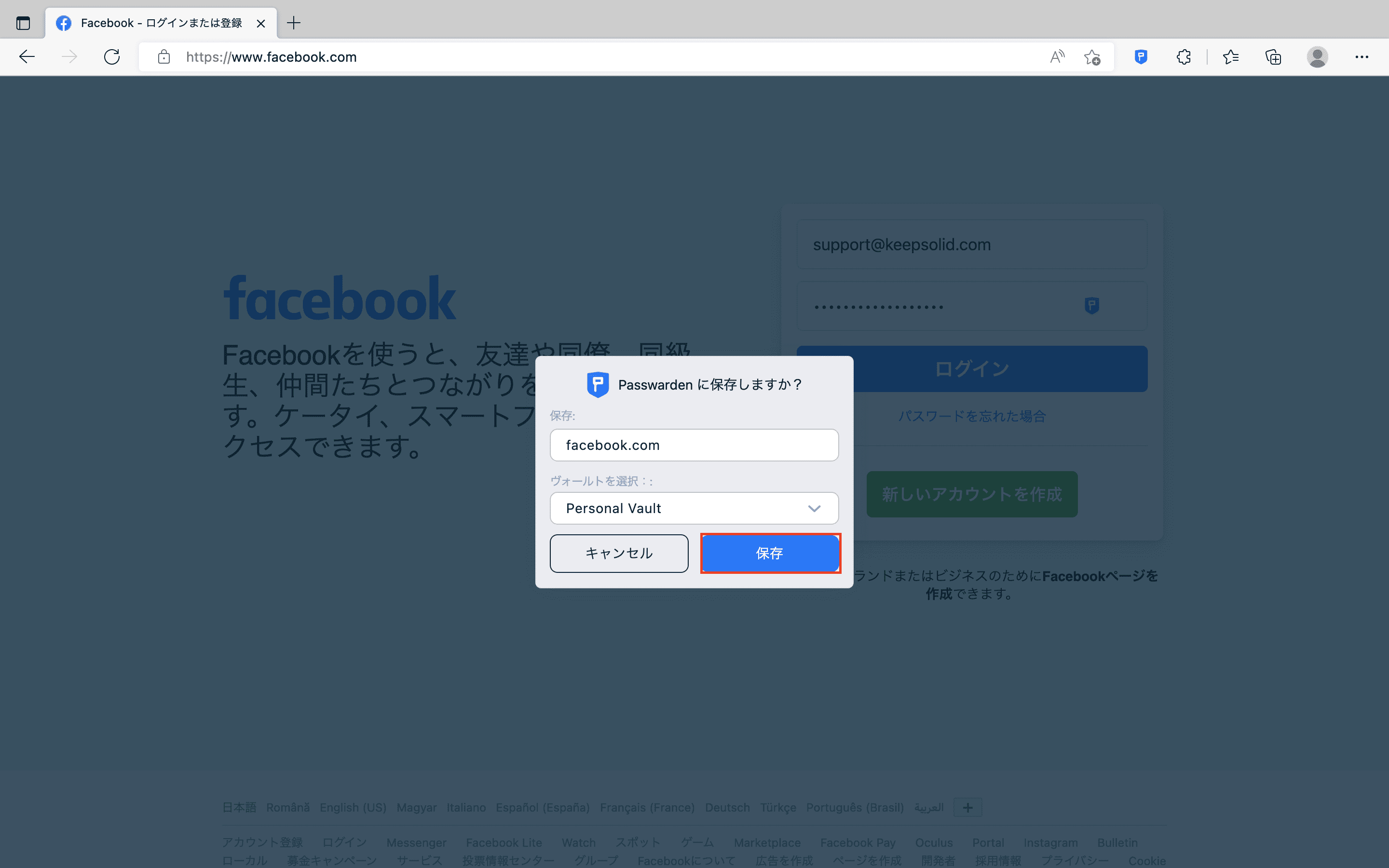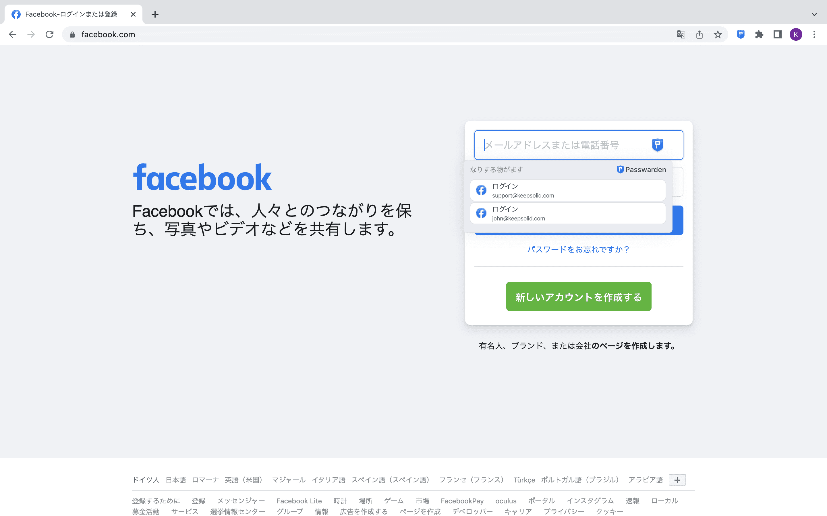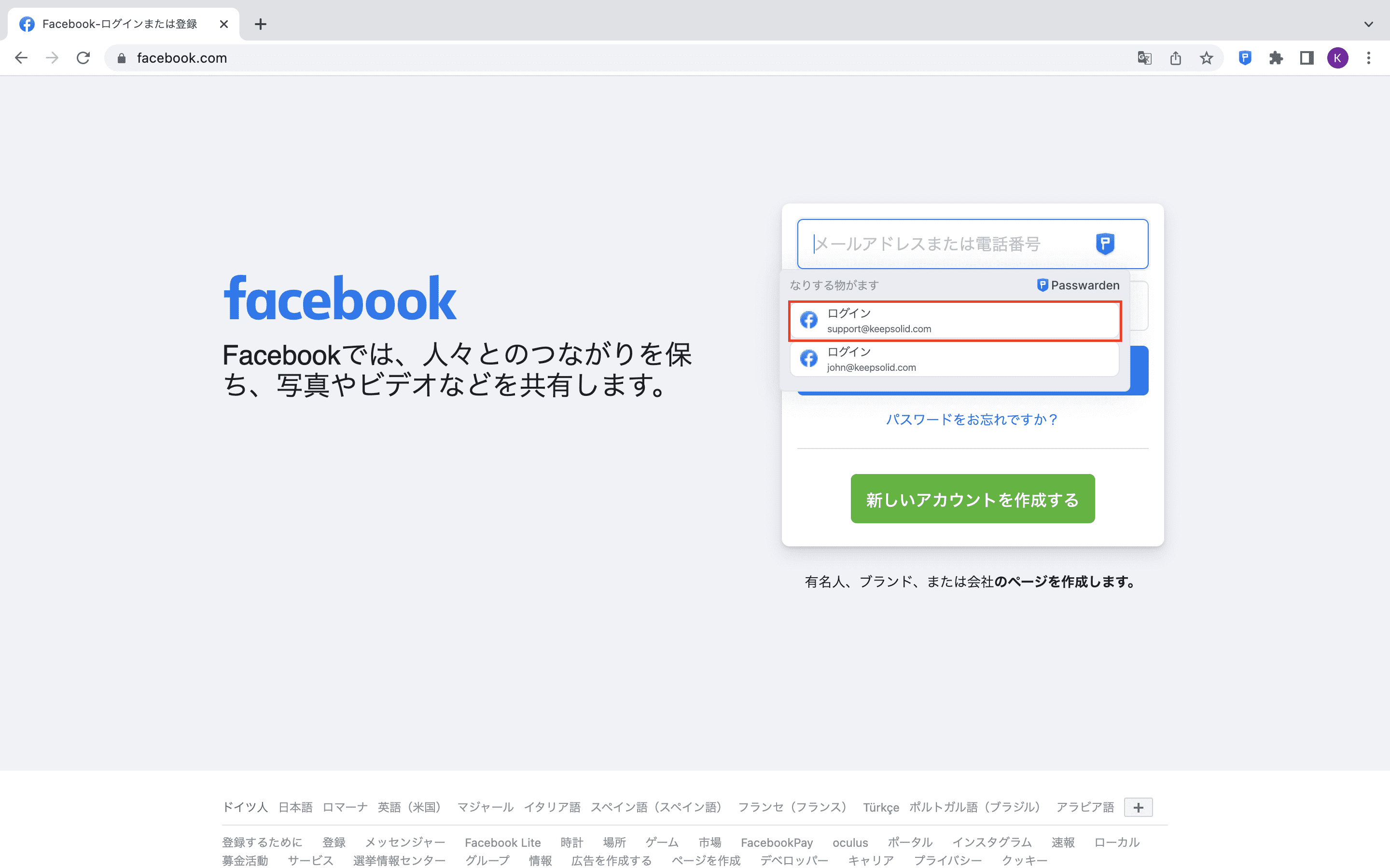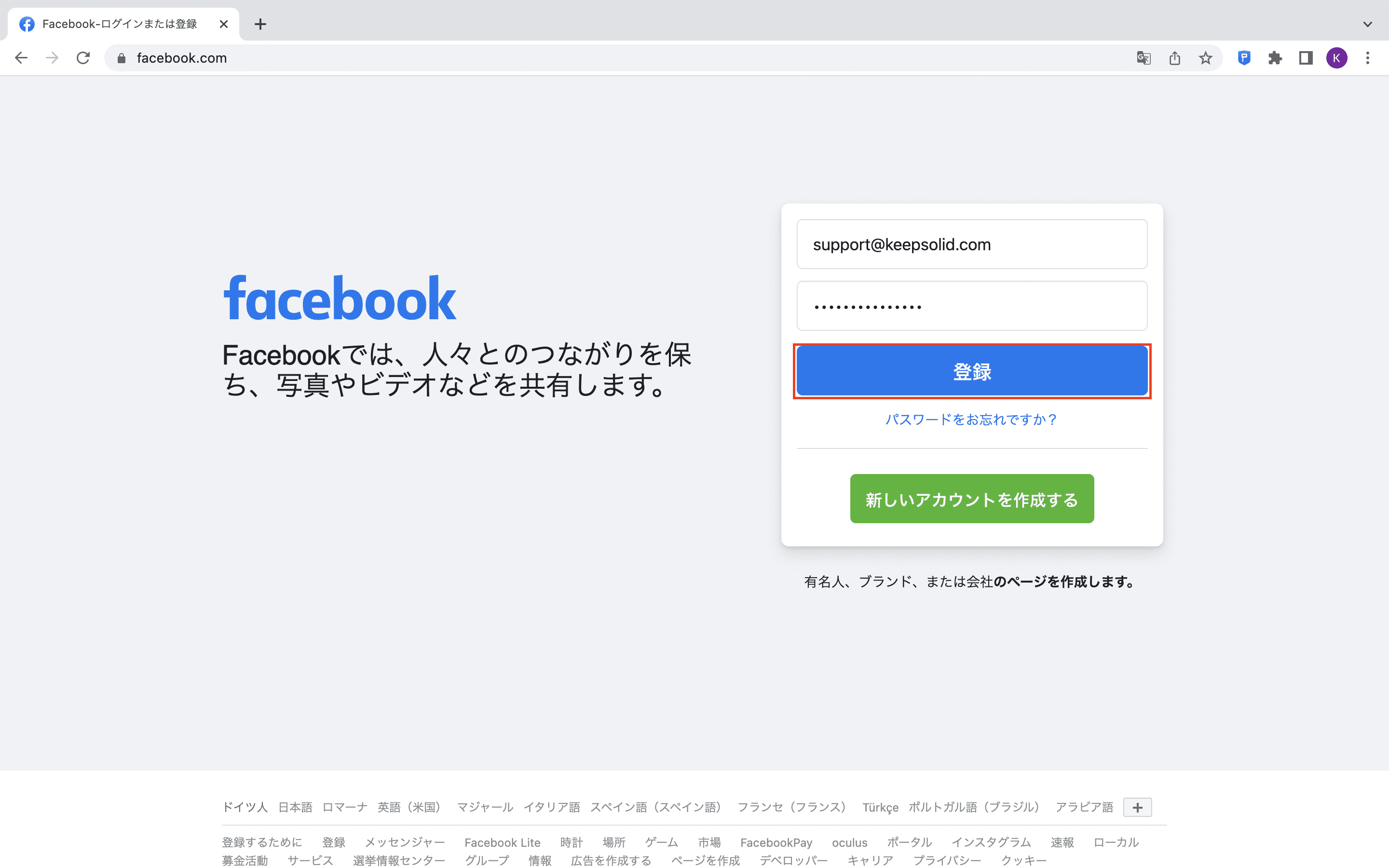 1. 任意のWebページ、例えばFacebookを開き、通常通りログインします。