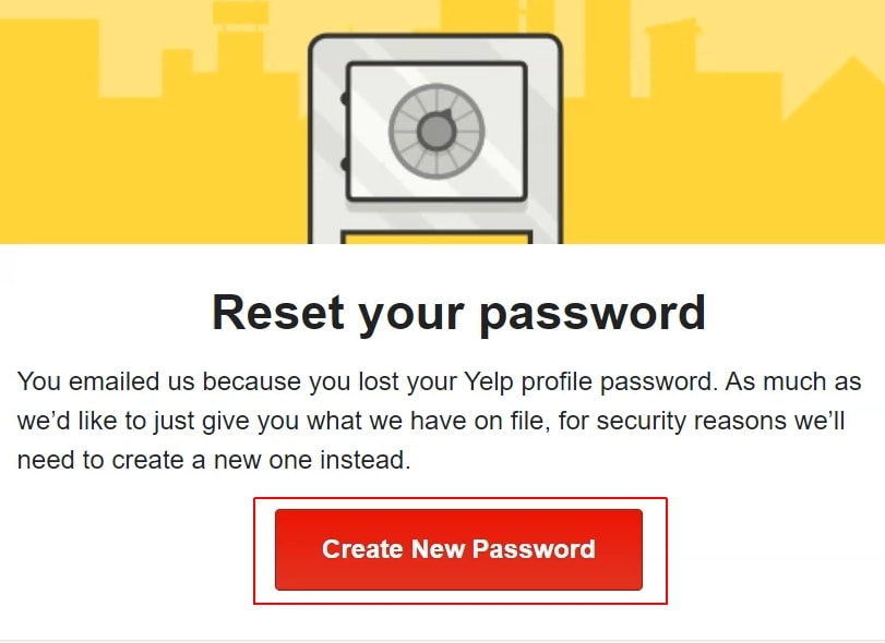 4. Через несколько минут на ваш почтовый ящик придет письмо от Yelp. Откройте его и нажмите кнопку Create New Password(Создать новый пароль).