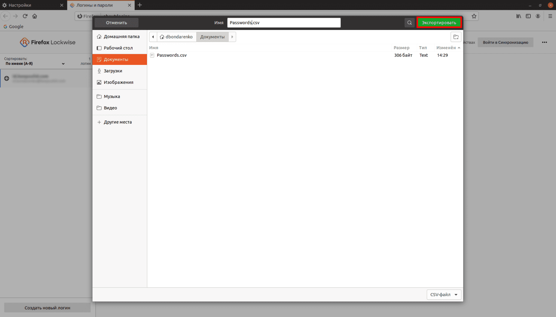 6. Выберите место, куда вы хотите сохранить экспортируемые данные и нажмите Экспортировать.