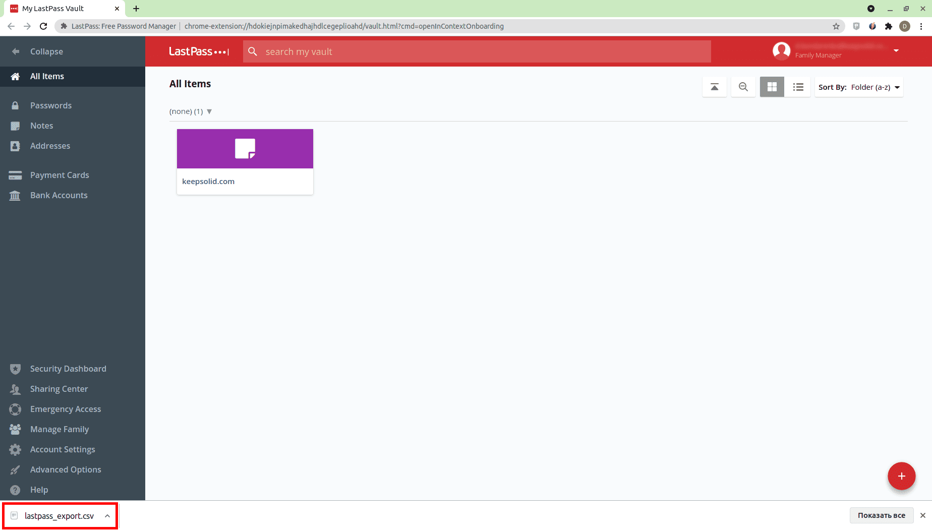 3. Файл lastpass_export.csv будет загружен автоматически.