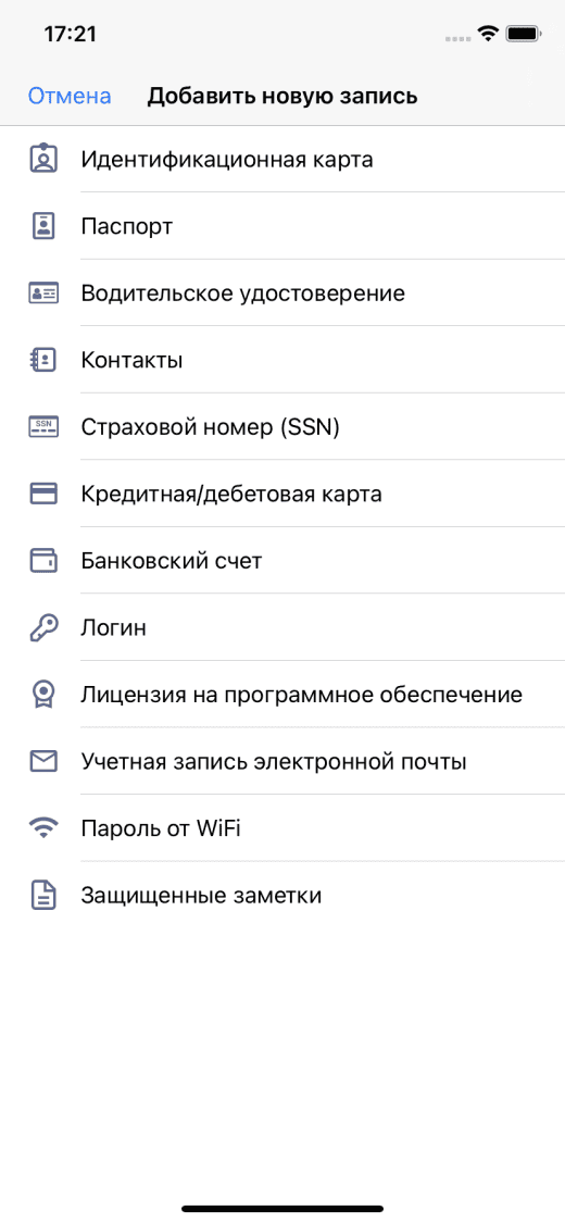 Наша программа для сохранения паролей позволяет хранить огромное количество типов данных: