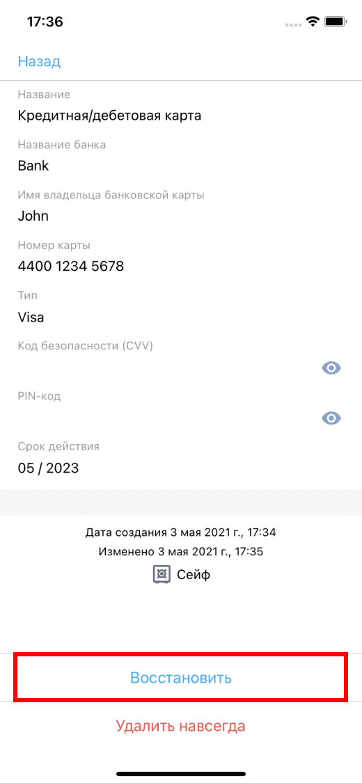 Примечание: Если вы хотите создать новый сейф, ознакомьтесь с нашим руководством по управлению сейфами.