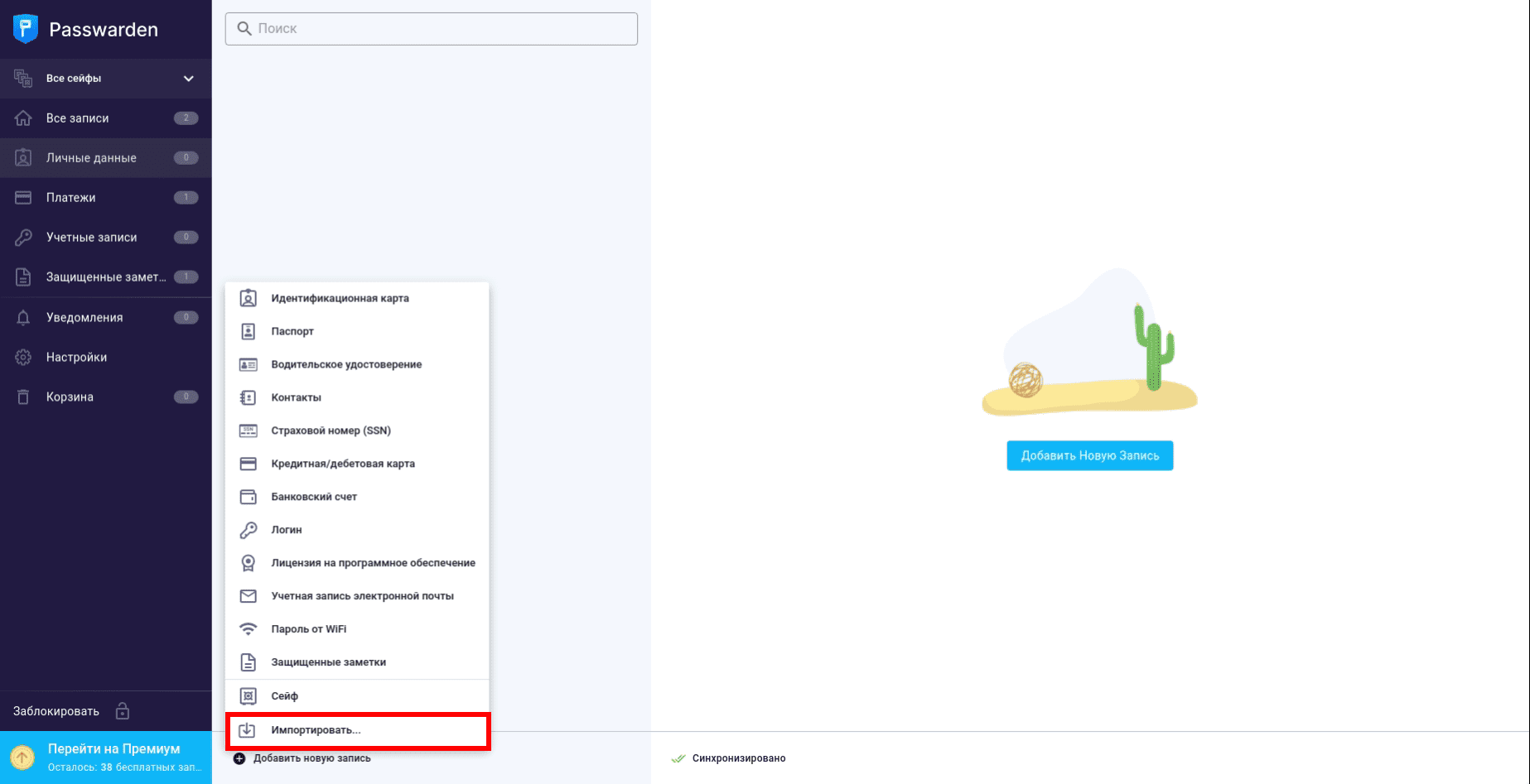 Примечание: Эта опция доступна только для настольной и веб-версии программы для сохранения паролей Passwarden.