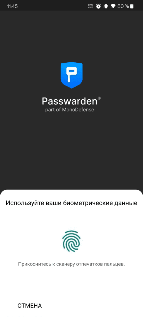 2. Нажмите на нее и разблокируйте свой профиль Passwarden.
