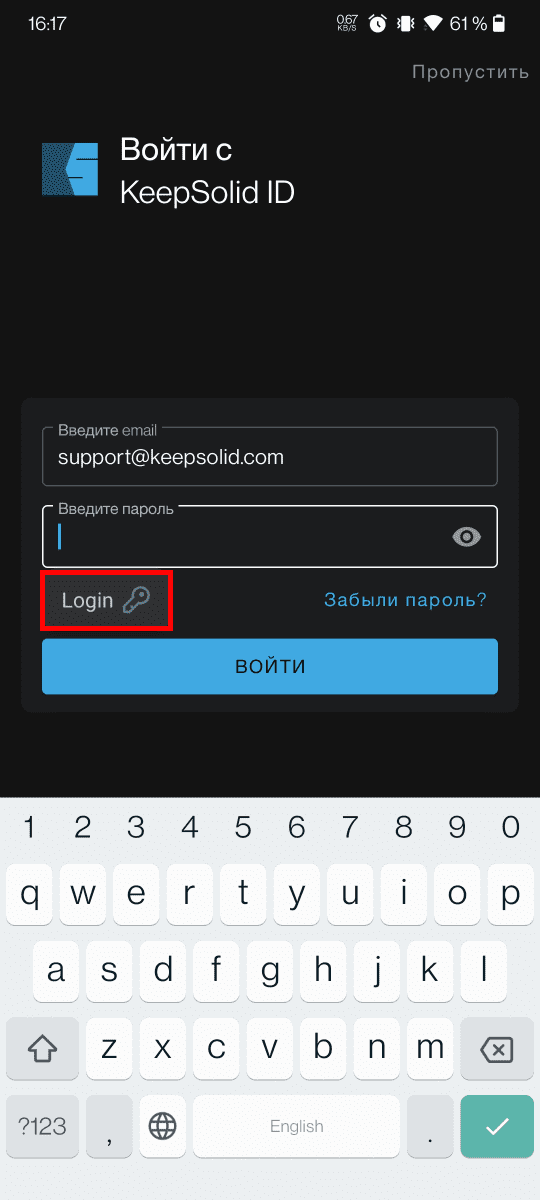 1. Откройте приложение и нажмите на поле ввода. Если в Passwarden есть соответствующие данные, то появится кнопка Нажмите, чтобы разблокировать.