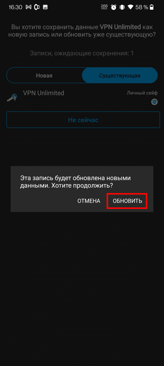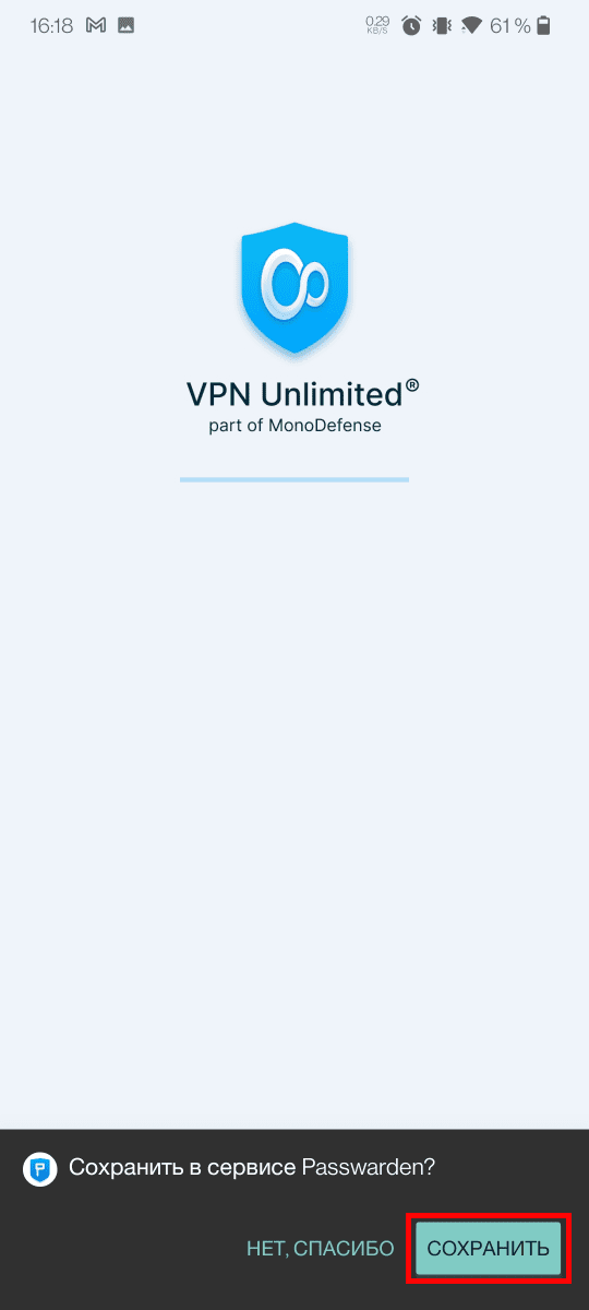 Примечание: Приложение VPN Unlimited приведено в качестве примера. Функция автозаполнения Passwarden отлично работает с любым приложением на вашем Android-устройстве.