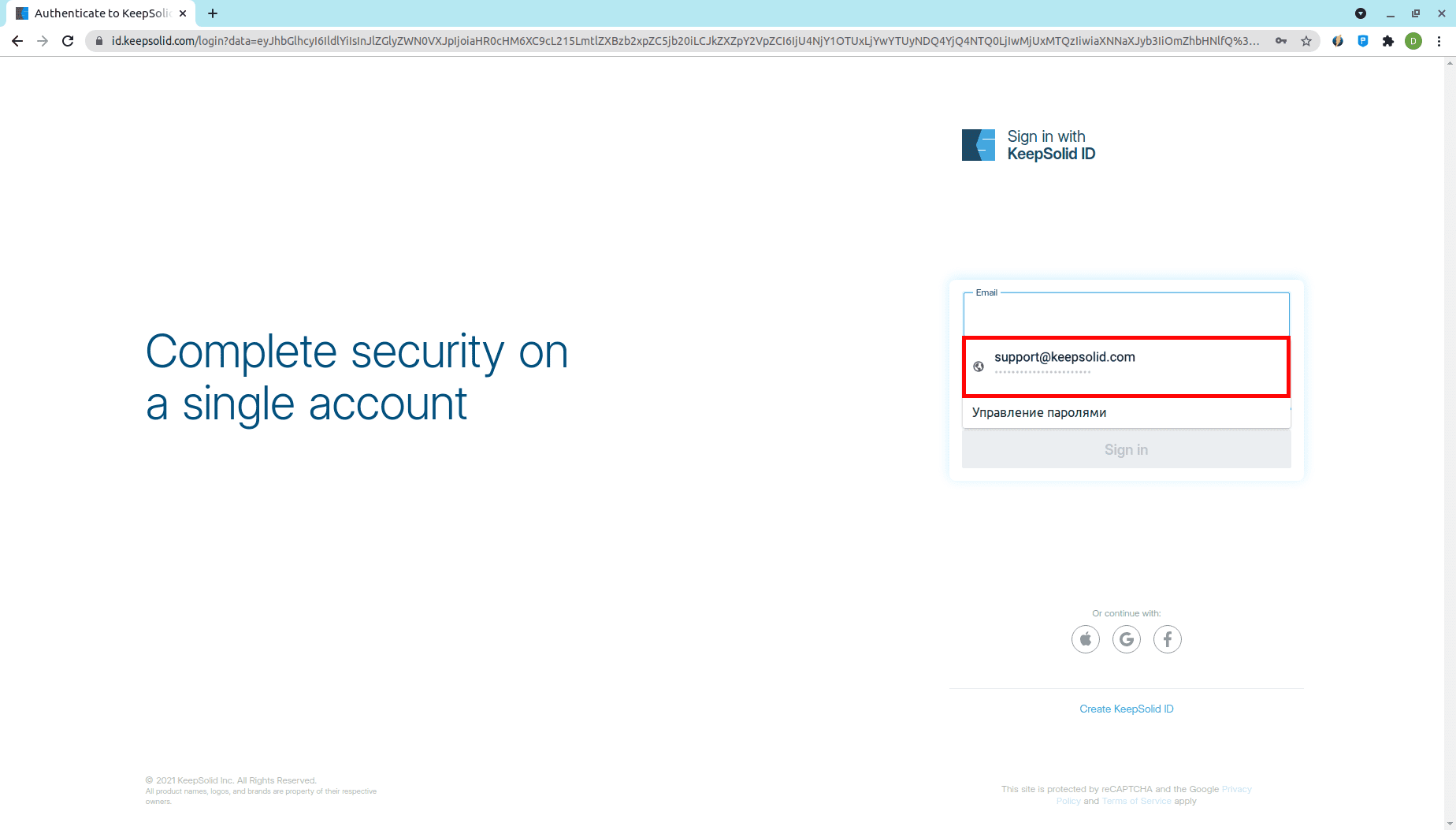 Если у вас есть какие-либо вопросы, связанные с нашим безопасным менеджером паролей с функцией Автозаполнения, свяжитесь с нашей службой поддержки support@keepsolid.com.