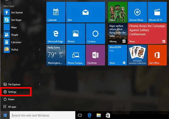 1. In order to change the computer password, find the button Start and then go and click on the button Settings.