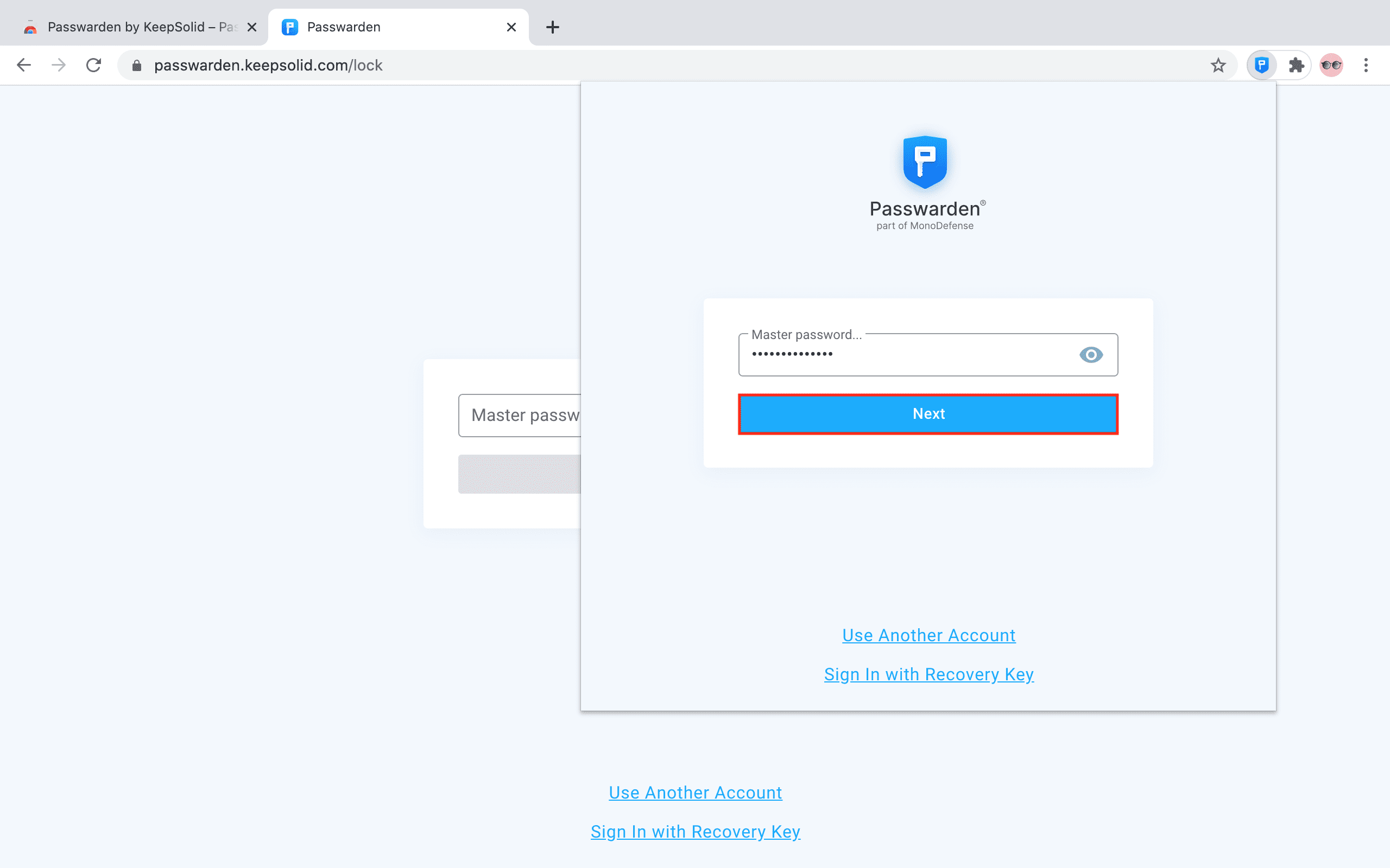 4. Great! Open the Passwarden extension and unlock it using your Master Password.