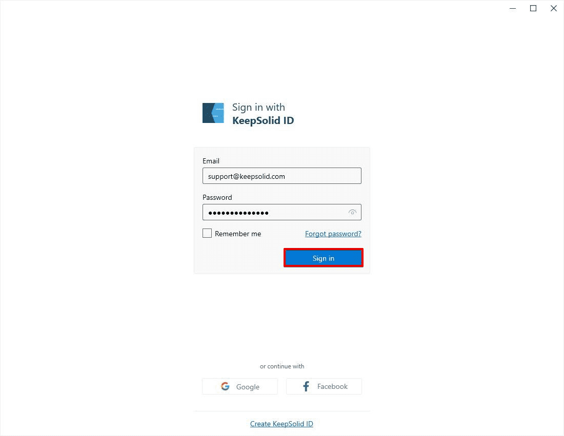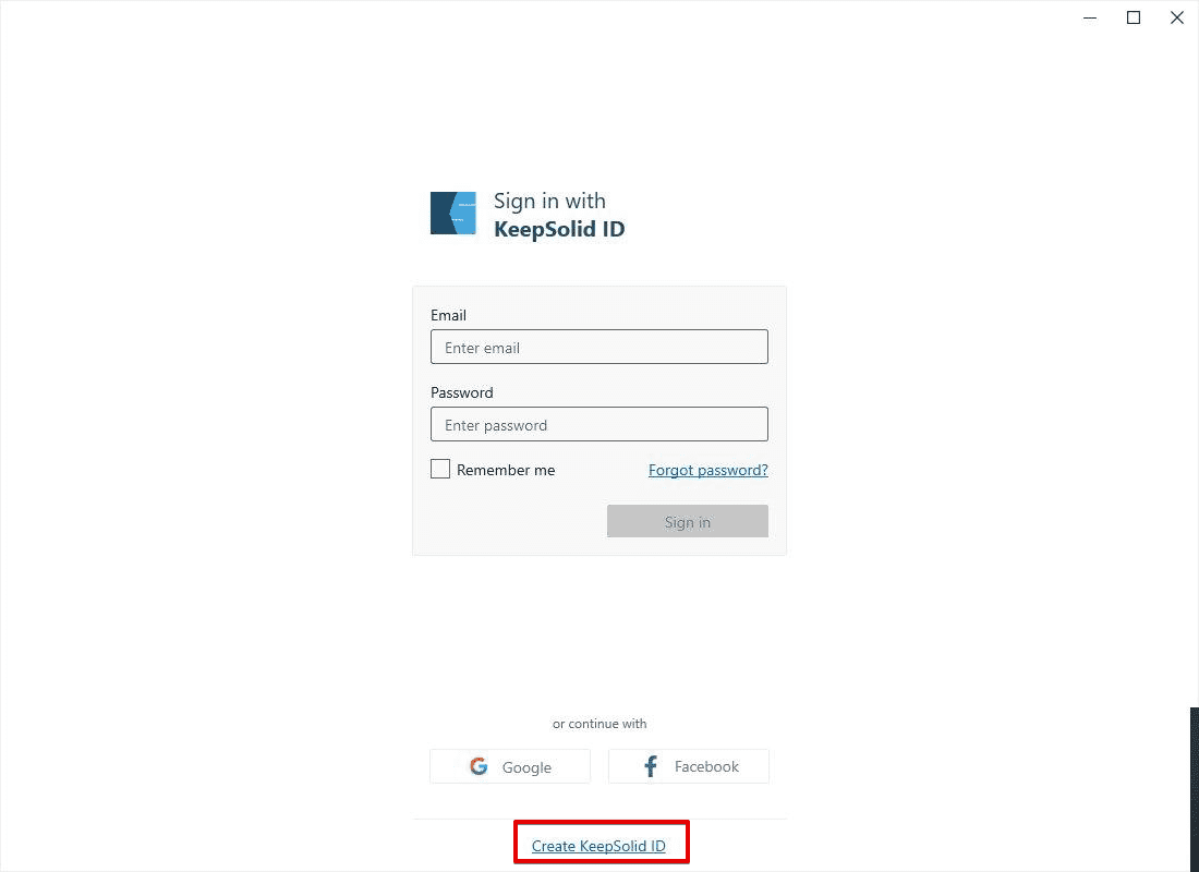 1. If you already have a KeepSolid ID, sign in using your email and password. You also can continue with your Facebook or Google account.