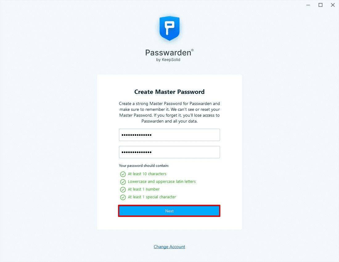 2. Then you should create a new Master Password. Confirm it and click Next.