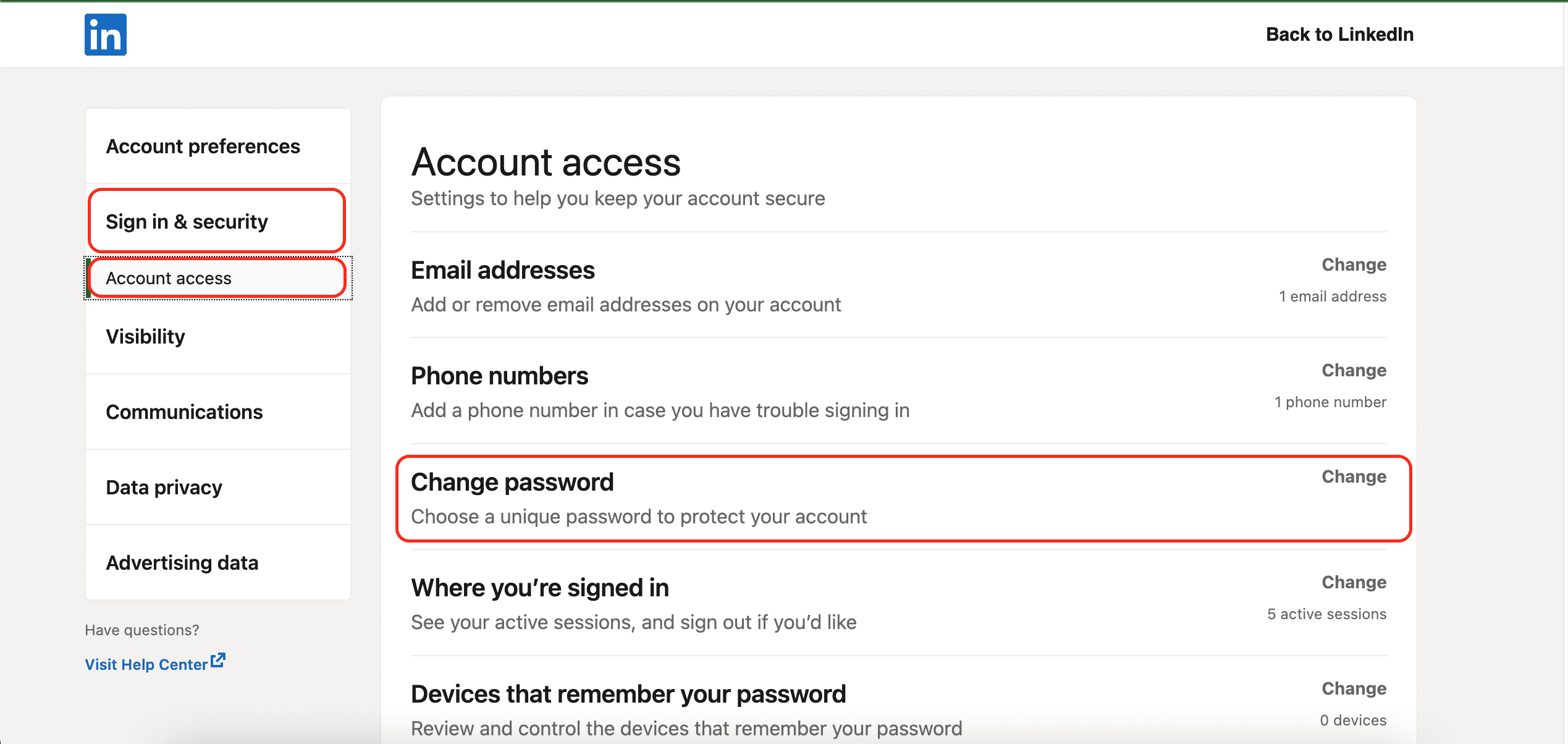 Виконайте наведені нижче дії, щоб змінити пароль LinkedIn.