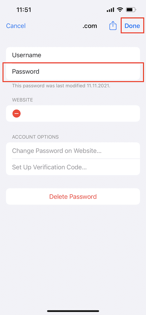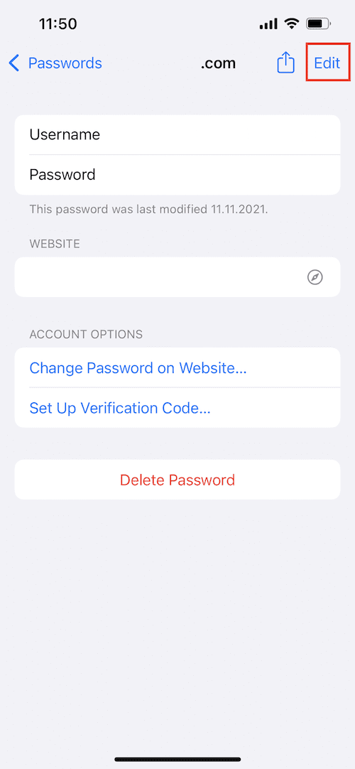3. Click Edit in the top right corner and replace your current password with a new one in the Password field.